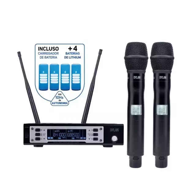 O sistema sem fio Dylan D‑9000S é ideal para quem busca liberdade, mobilidade e som profissional em eventos, shows, igrejas, palestras ou festas. Com dois bastões transmissores e receptor UHF, ele permite performances sem fios — sem complicação, com praticidade e som limpo.